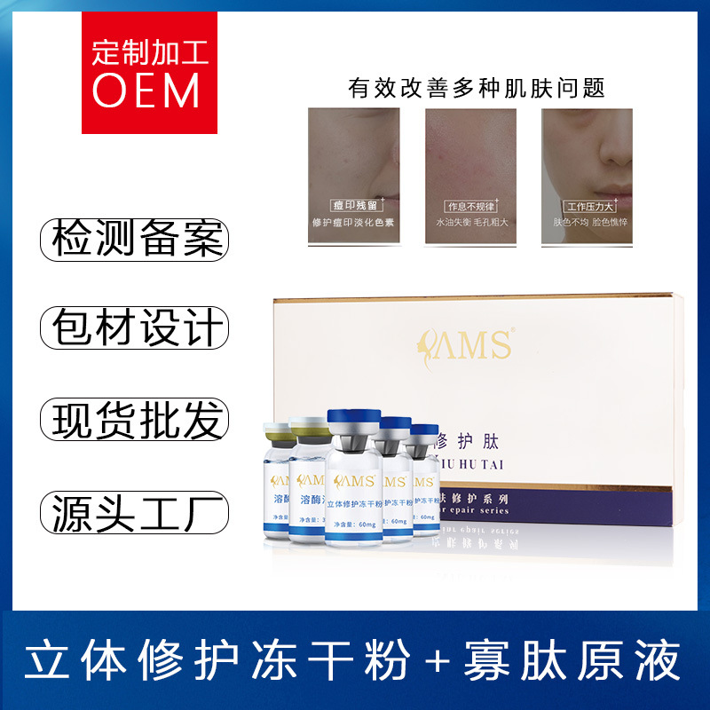 凍干粉OEM雅美斯修護(hù)肽凍干粉 寡肽凍干粉套盒 補(bǔ)水修護(hù)痘印保濕現(xiàn)貨批發(fā)